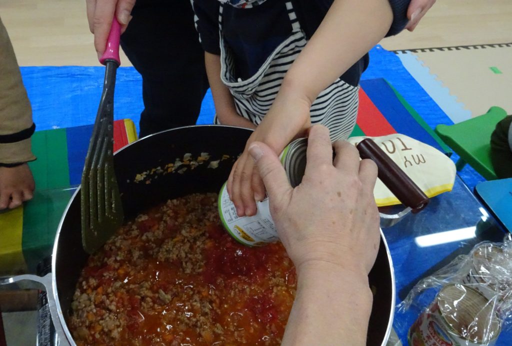 19日(土)、今日の午前はみんな大好き、ミートスパ作りです。