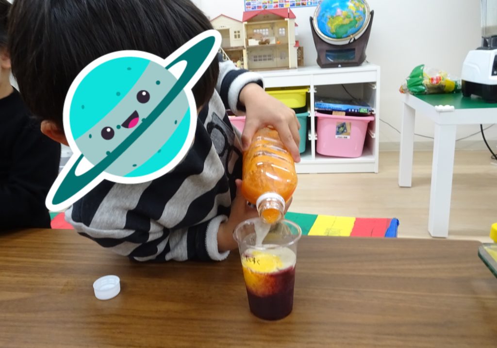 みんなは、飲みたいものをいろいろ混ぜては味の変化を楽しみます。