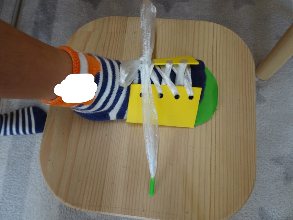 2022年06月20日 ゆめなーる稲沢教室 靴ひも通しの練習^^ 6月17日(金) 今日は靴ひもを通す練習をしました! 靴に見立てた画用紙の小さな穴に、紐を交差して通していきます。 やる前は「これぐらいできるよ!」と自信いっぱいの子どもたちでしたが、交差して通すのが難しく苦戦している姿もみられました。 紐を通した後は保育士に手伝ってもらいながら蝶々結びをして完成! 完成して実際にはいてみると、みんなの満足そうな顔が見られました^^ 記事一覧に戻る