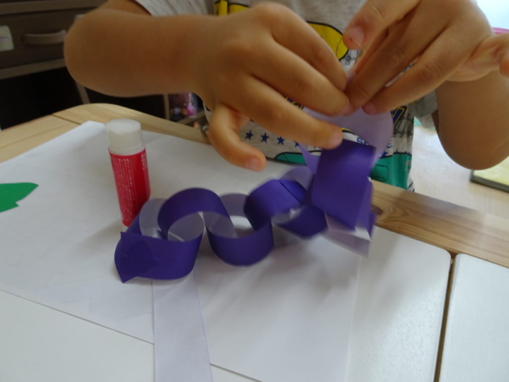 2022年09月20日 ゆめなーる稲沢教室 ハサミ練習✂輪繋ぎブドウ🍇 本日の活動ではハサミを使った輪繋ぎブドウを作りました。 先生に見守られながら、器用にハサミを使って折り紙を切っていました(^^) 一生懸命のりで貼ったら完成! 美味しそうなブドウをみんなで作って、楽しかったですね✨ 記事一覧に戻る