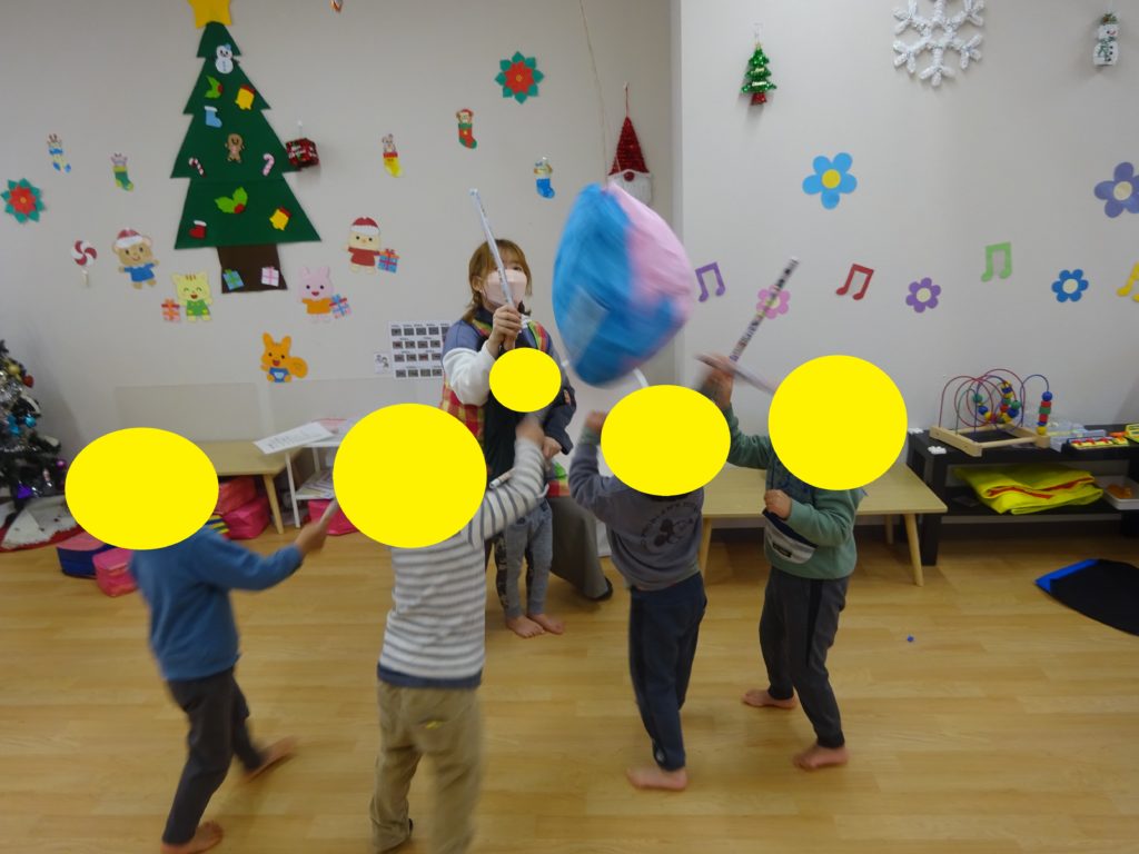 ピニャータでは、中からプレゼント箱がでてきて喜ぶ姿がありましたよ♪
