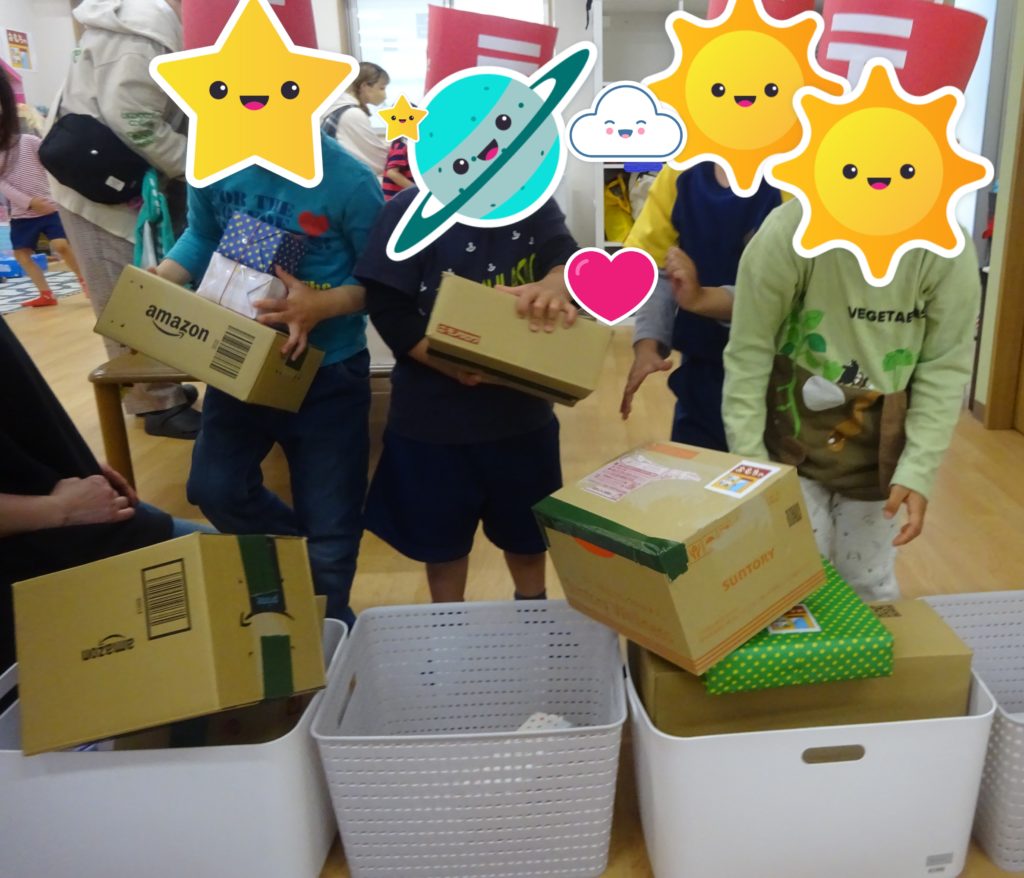 荷物を届ける前に荷物のマークを確認し、同じマークのところにいるお客さん役のお友だちに届けることが出来ました♪