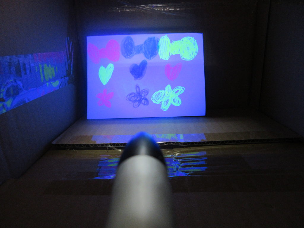 蛍光ペンがブラックライトによって、明るく光って見えました✨