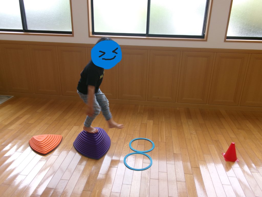 午後はサーキットトレーニングの時間です。まずは先生のお手本のコースを体験してみてから「ここにトンネルを置こう」「ここはジグザグに通って…」など、それぞれ意見を出し合ってコースを作り変えました!できあがったコースは、のぼったりくぐったり跳んだりとさまざまな要素が盛りだくさんで、みんな何周もしながら楽しんでいましたよ✨