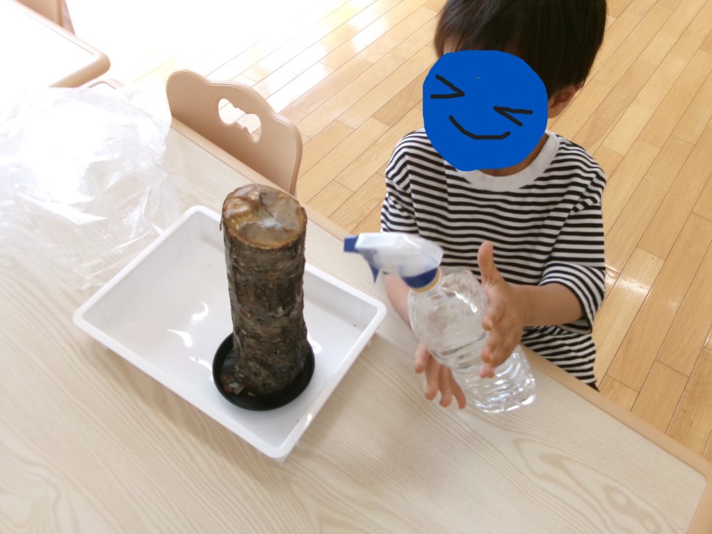 また17日(月)から、教室対抗しいたけ栽培バトルが始まりました🍄しいたけの原木を見るのは初めての子ばかりで、みんなで霧吹きでお水をあげて大切に育てています😊大きなしいたけがたくさんできるといいね✨