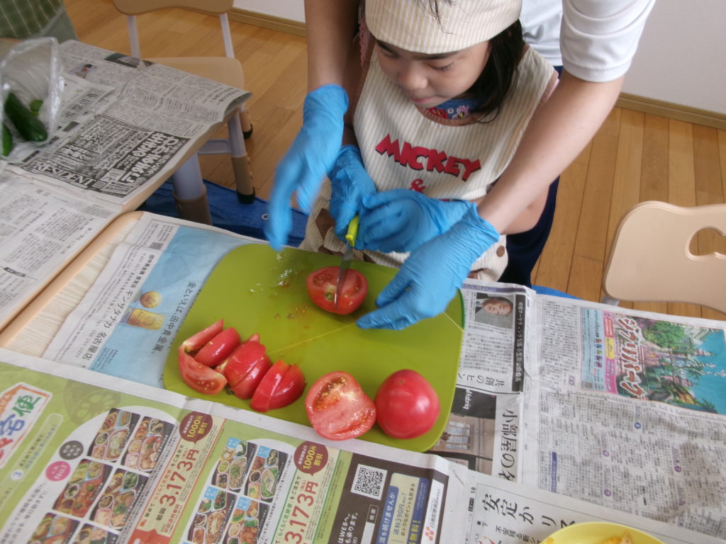 それぞれきゅうりを切ったり、トマトを切ったりと担当に分かれて進めていきました!!
