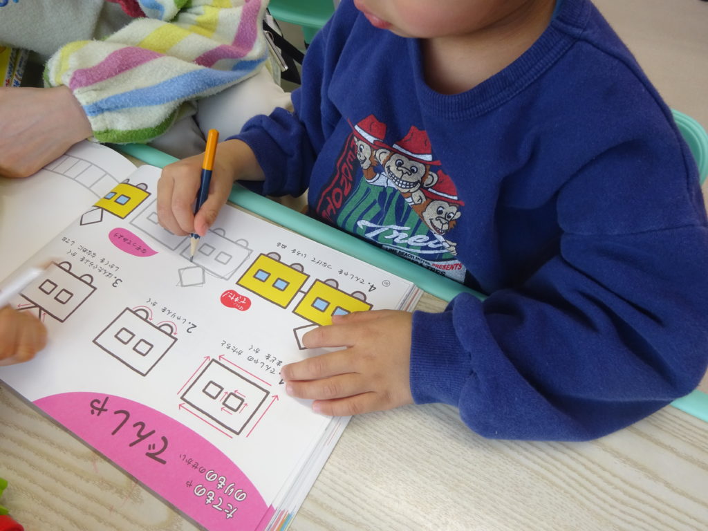 イラスト練習をするときは、保育士が遊びのタイミングを見て誘います。
