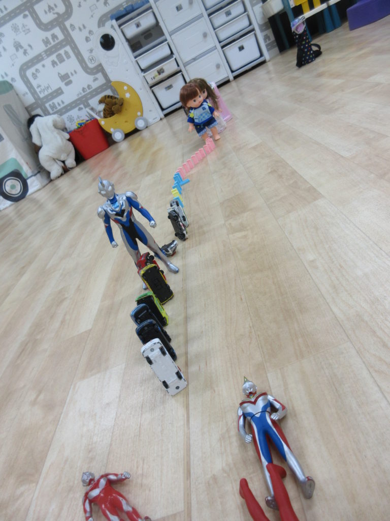 今週のテーマ活動「協力」の集大成!ドミノに挑戦しました。