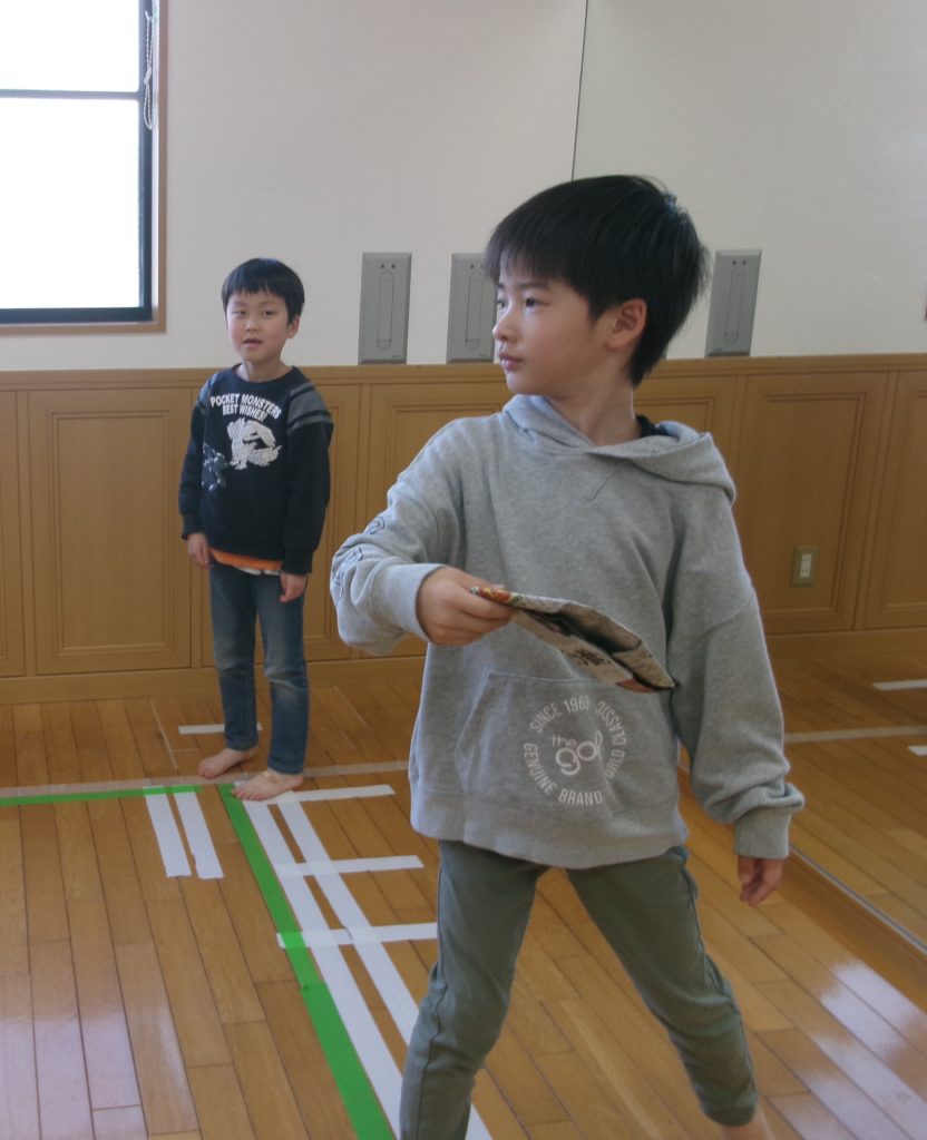投げる方は、手首を上手く使い前へ投げることができていた子どもたち!成功すると嬉しそうでした。