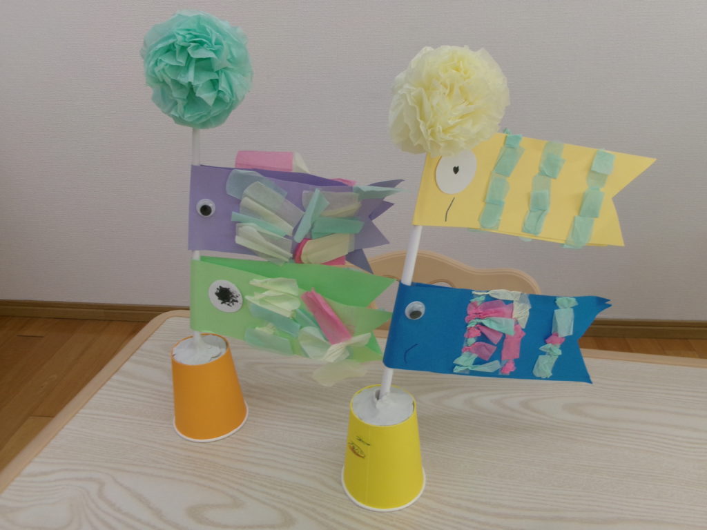 最後にはとてもカラフルで可愛いこいのぼりがたくさんできて子どもたちも大喜びでした☆