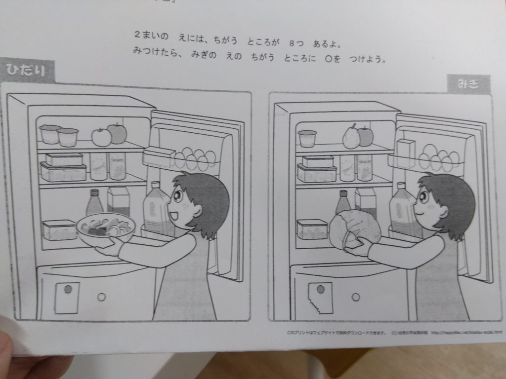 2025年04月30日 ゆめなーる稲沢教室 まちがいさがし🔍 R7年4月30日(水) まちがいさがしを行いました。 左右の絵を見比べて違うところを8つ探して見つけたところに丸をつけていきました。 左右で個数が異なるところは?大きさが異なるところはないかな?と左右の絵をじっくり見比べていました。 間違いを見つけた時には「あった!」「大きさが違うね」とどこが違うのかを嬉しそうに説明してくれました。 記事一覧に戻る