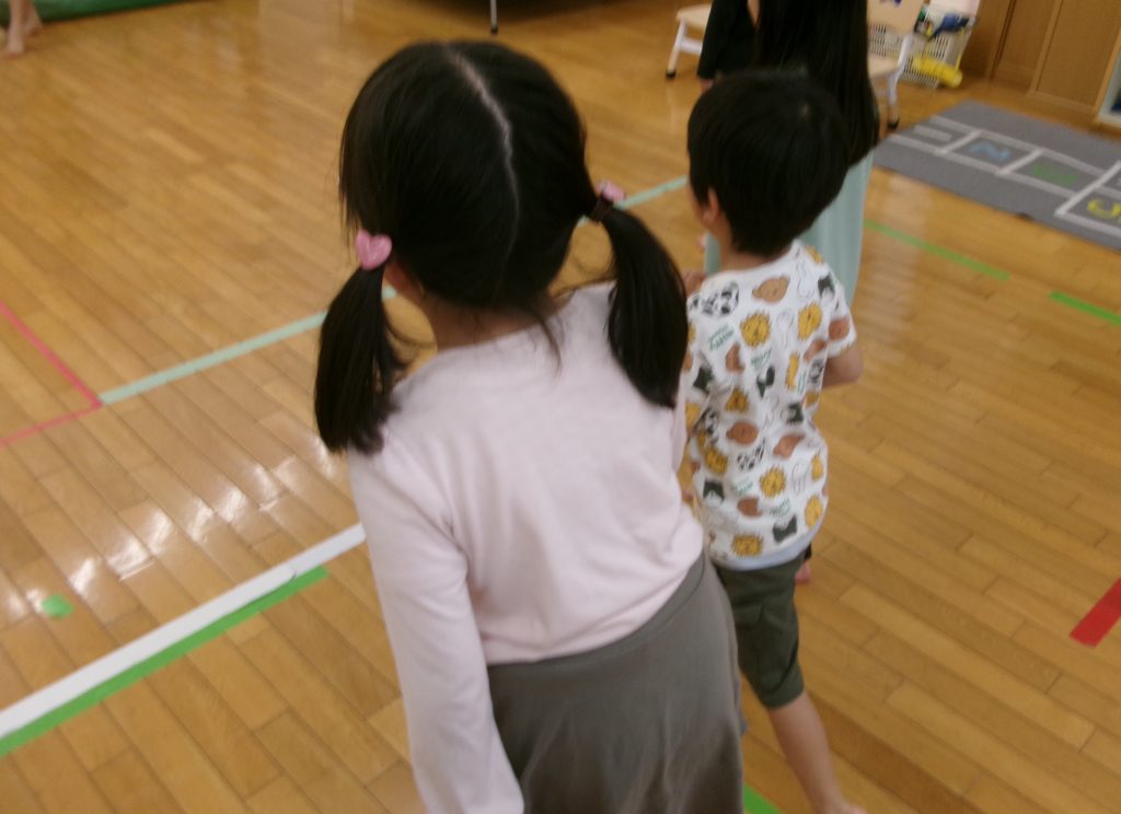 だるまさんがころんだの合図に合わせて歩き、ピタッと止まります。鬼の声をよく聞いてしっかりと止まることができました✨