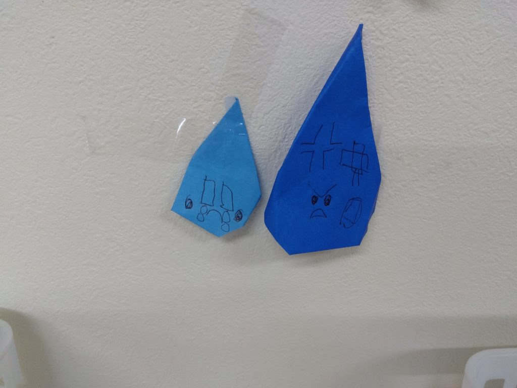 しずくちゃんの顔を描く時にユニークな発想で怒っている顔や泣いている顔など