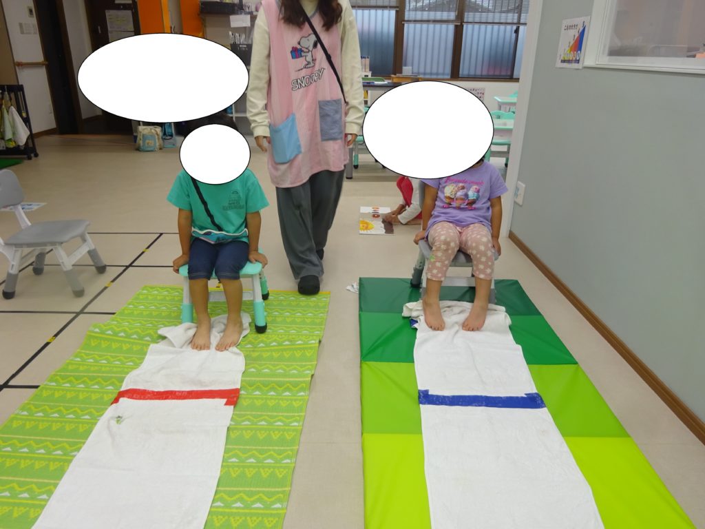 今日はタオルを使った足の運動に主した活動を行いました!!