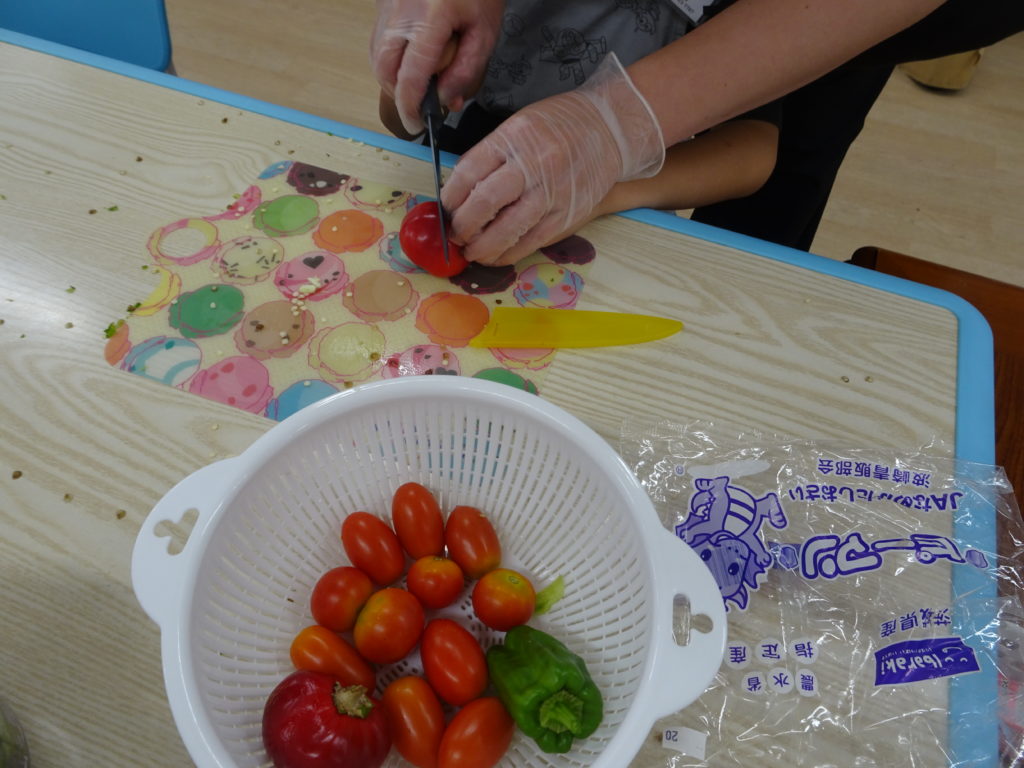 2025年07月19日 ゆめなーる稲沢教室 ドライカレー作り 令和7年7月19日 土曜日 午前中にドライカレー作りに取り組みました。 初めにゆめなーるで育てている野菜を収穫!立派な野菜たちにみんな大興奮です! 先生と一緒に包丁でフードプロセッサーに入る大きさに切って、手をぱっと離さないお約束を守りながら、フードプロセッサーでみじん切りにしていきました! 「これは満点だね!」とたくさんおかわりしてくれました(^▽^) みんなが大切に育てた野菜だからよりおいしいですね(^▽^)♩ 記事一覧に戻る