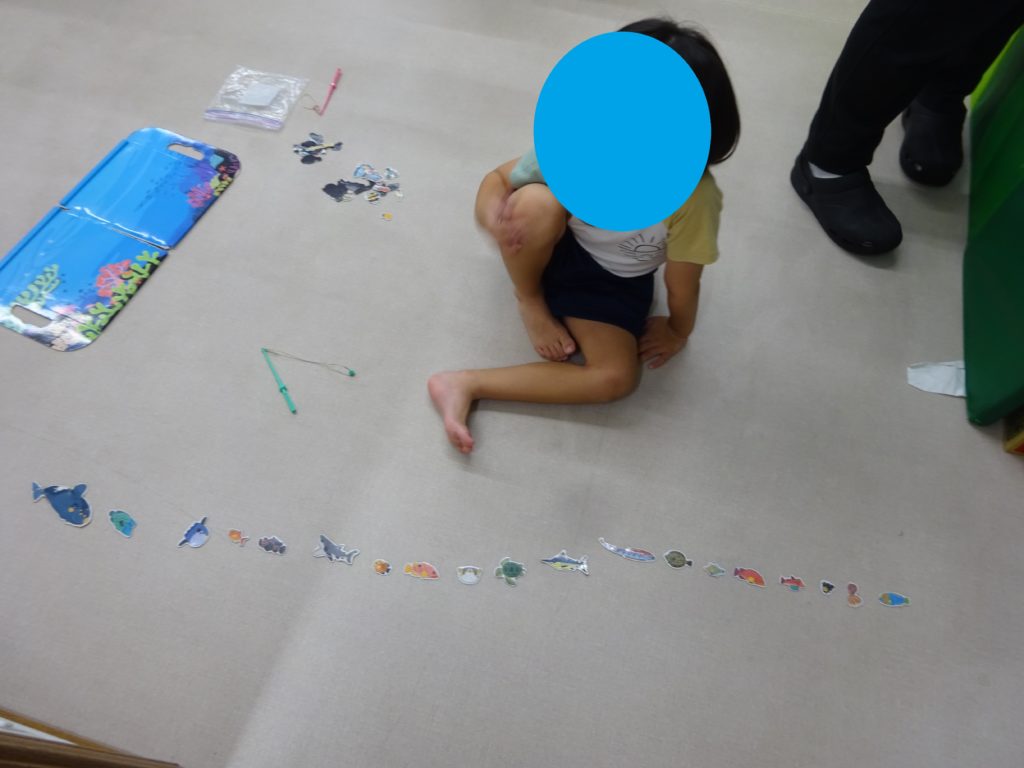 中には一人でじっくりまったりと遊びながら、釣れた魚を綺麗に横一列に並べている子もいて、まるで魚屋さんのような光景になっていました🎣