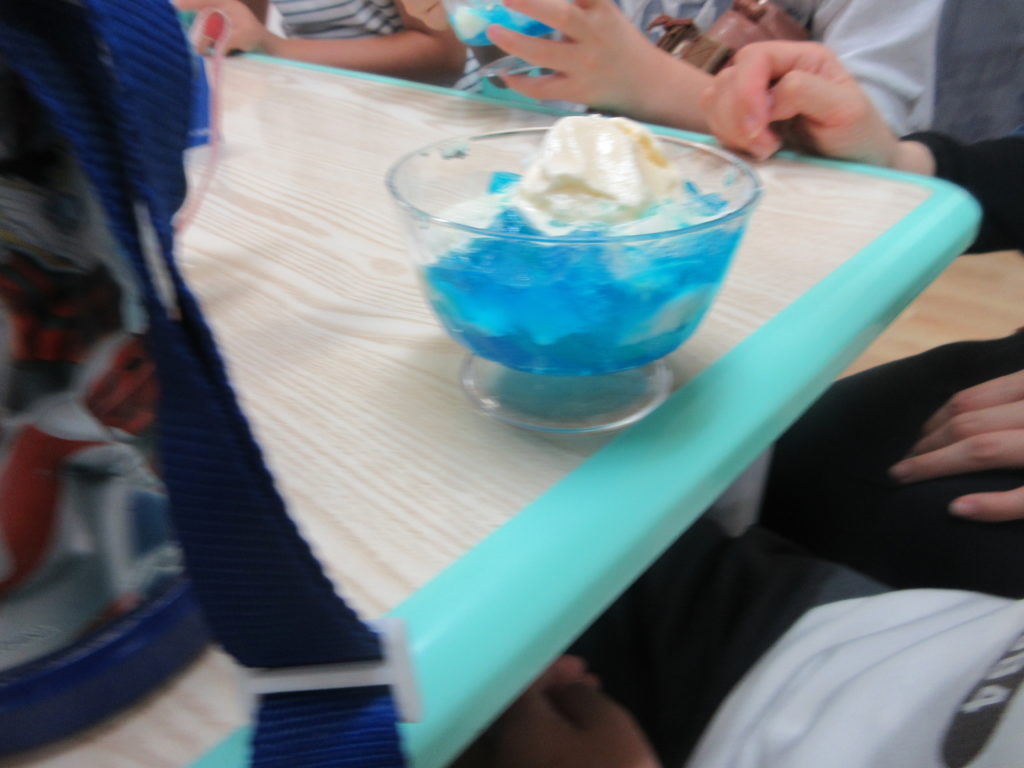 午後からは、青空ゼリー作り‼ブルーハワイのシロップとカルピスを使用してとってもかわいいゼリーを作ることができました♬