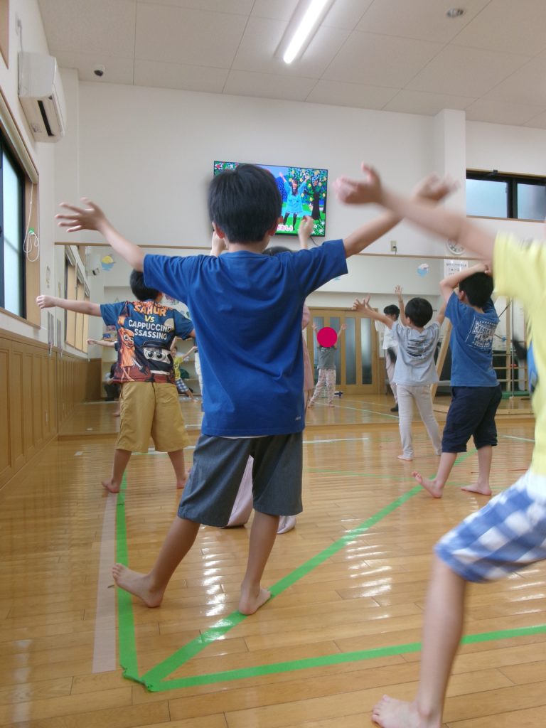 午後の運動プログラムはダンス🌟 1曲目は”いなっぴー音頭”をみんなで踊りました。さすが稲沢市の子どもたち!お祭りや保育園などで踊ったことがあるのが、みんなとっても上手でした!続けて”アブラハムの七人の子””パプリカ””ソーラン節”を踊りました。たくさん身体を動かしたので、汗をかく子も💦でも、みんなで踊ることが楽しくてみんなとってもいい笑顔でした♪