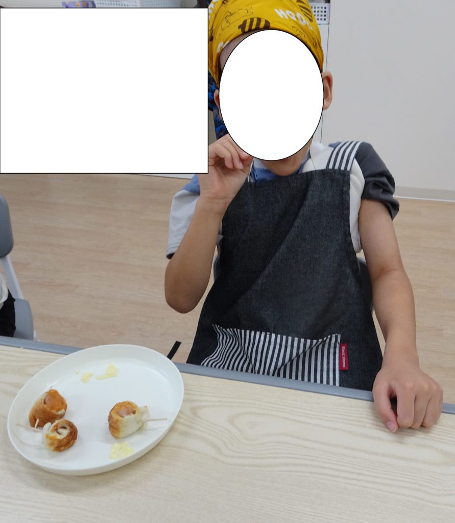 ちくわはどう切るの?ソーセージはどう切るの?と聞くときちんと説明を聞いておりちくわは2つに切る、ソーセージは4つと答えることができていました。