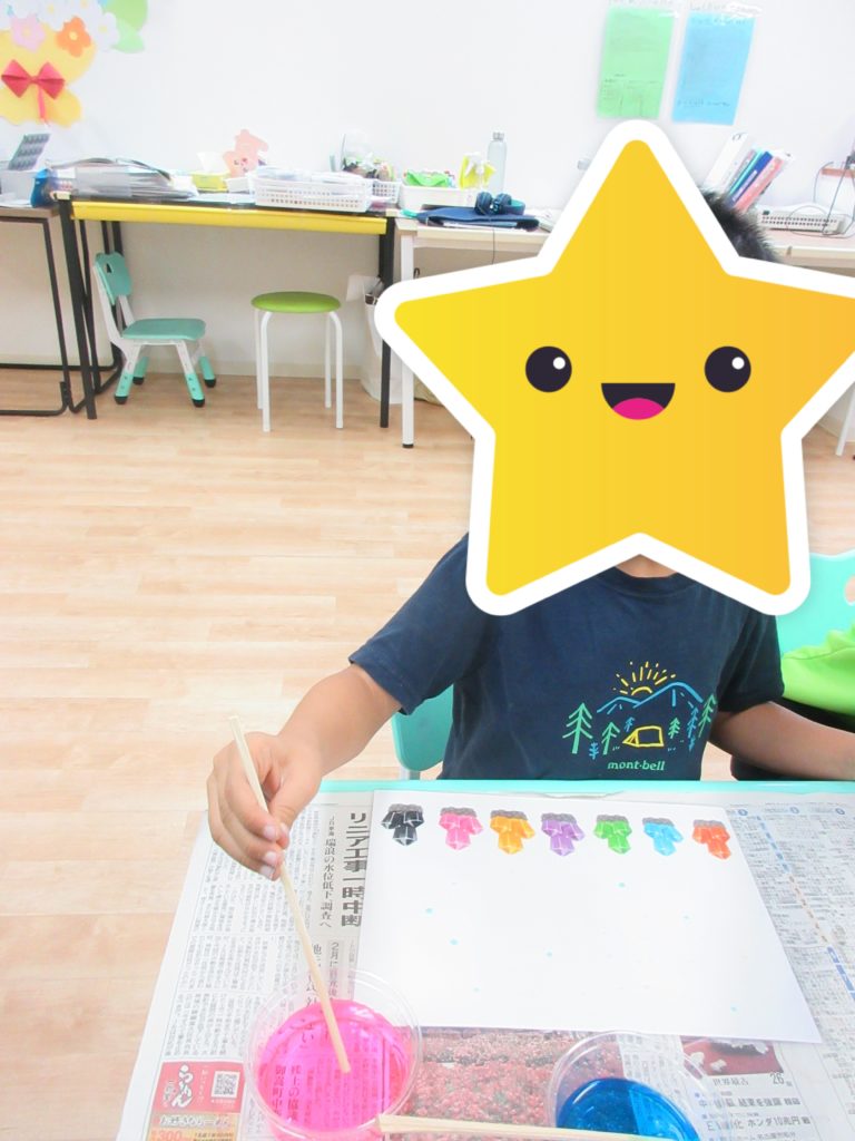 今日は色水の水滴を使った活動にチャレンジ!カラフルでとてもかわいい水玉を割りばしやつまようじ、スポイトを使って自在に動かしていきました☺