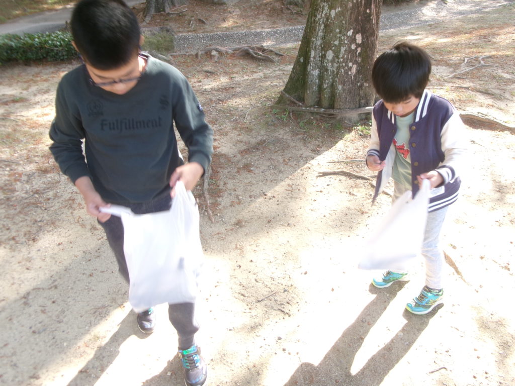 稲沢公園では、時計塔のある広場で遊びました。小学生の子たちはいつもより広いスペースで思い切りだるまさんがころんだを楽しんでいました。ビニール袋をたくさん持ってきたので、みんなで落ち葉拾いもしました✨「先生!みて~おっきい葉っぱ!」「木の実もあったよ」「こっちにはどんぐりも!」と見つけたものを嬉しそうに見せに来てくれる姿があり、とってもかわいかったです♡