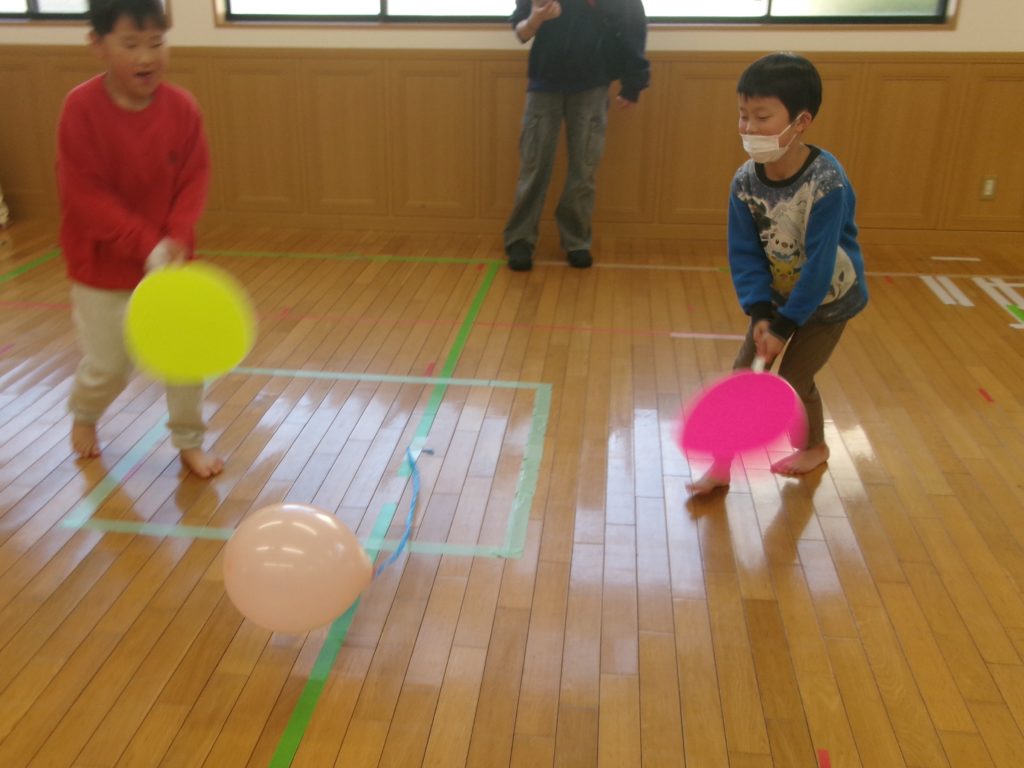 午後は”うちわを使って風船遊び”をしました。うちわでパタパタと仰ぎ、相手の陣地に風船を飛ばしたり、友だちと協力して風船を高く上げることを楽しみました。どの子も顔が赤くなるくらい一生懸命でした🌟