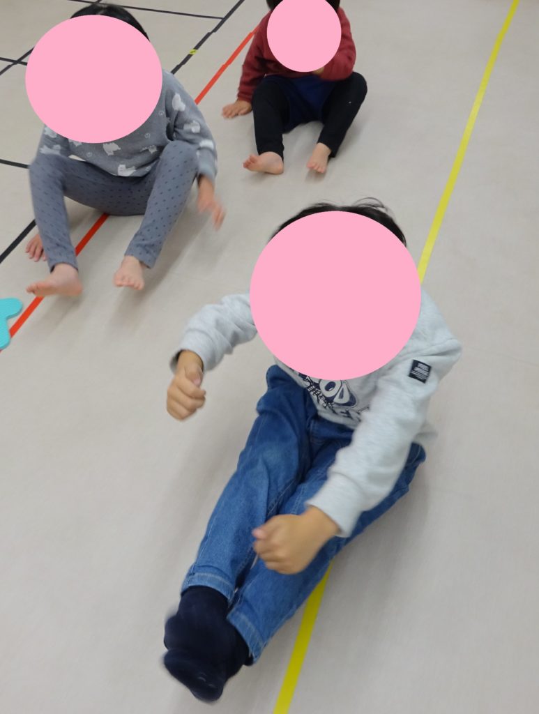 おしり歩きは体幹の筋肉を鍛えるので、姿勢の改善やバランス感覚の向上に効果がみられます!次回も姿勢の改善やバランス感覚の向上を目指して運動プログラムに取り組んでいきます。