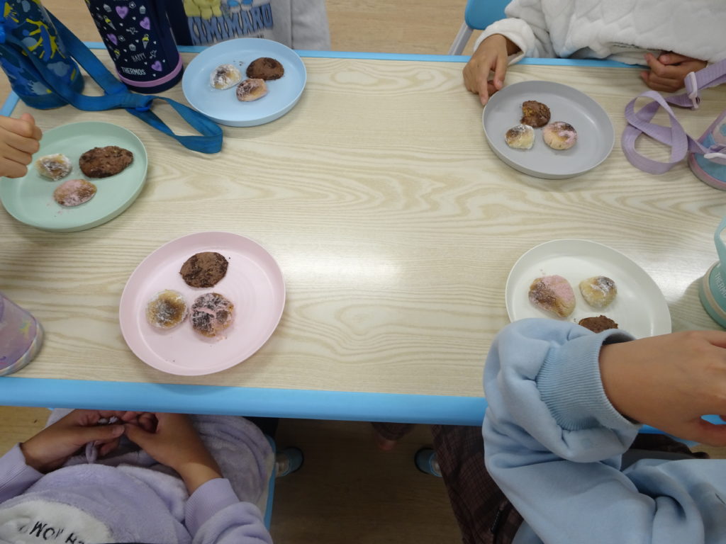 スノーボールクッキーという子ども達の中でも耳にしない言葉だったため、すごくワクワクしている様子でした。