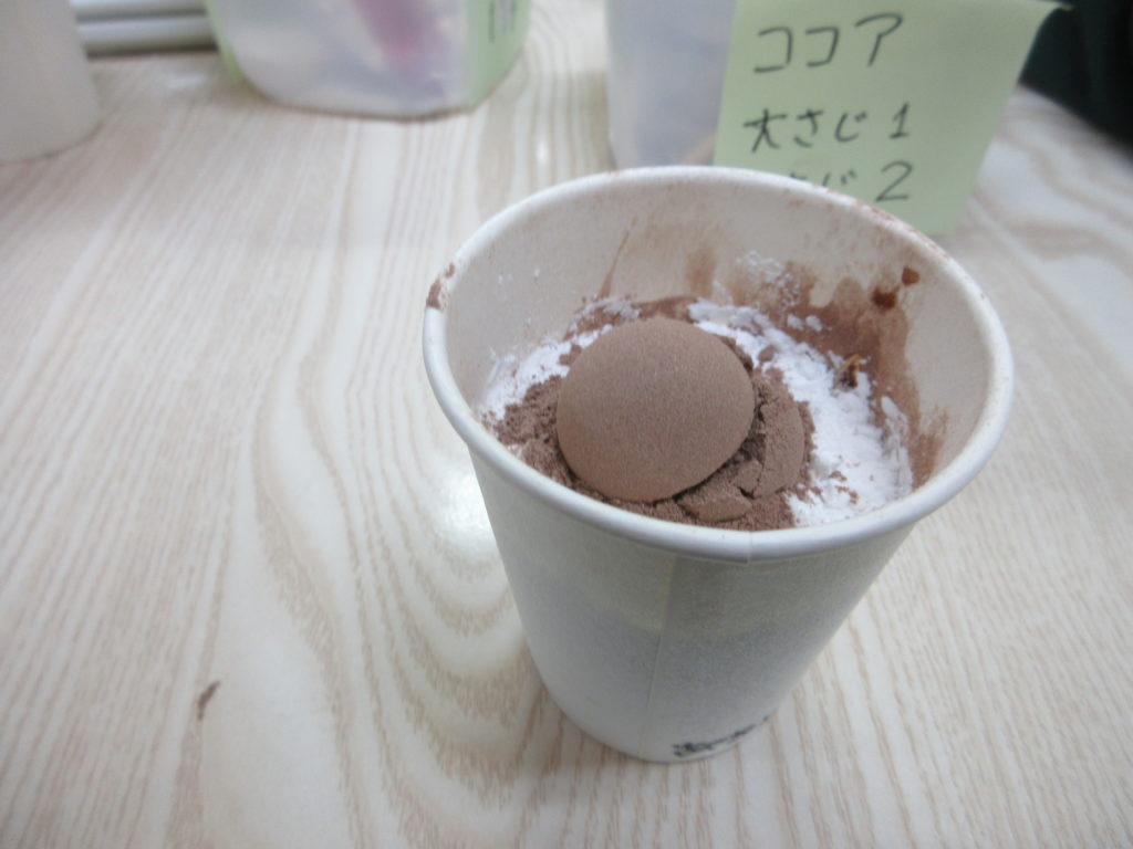 さあ、らぼではチョコ餅作りにチャレンジ!チョコ餅、という名前ですが、チョコもお餅も使用せず「ココアパウダー」「片栗粉」「砂糖」を使用して作りました!