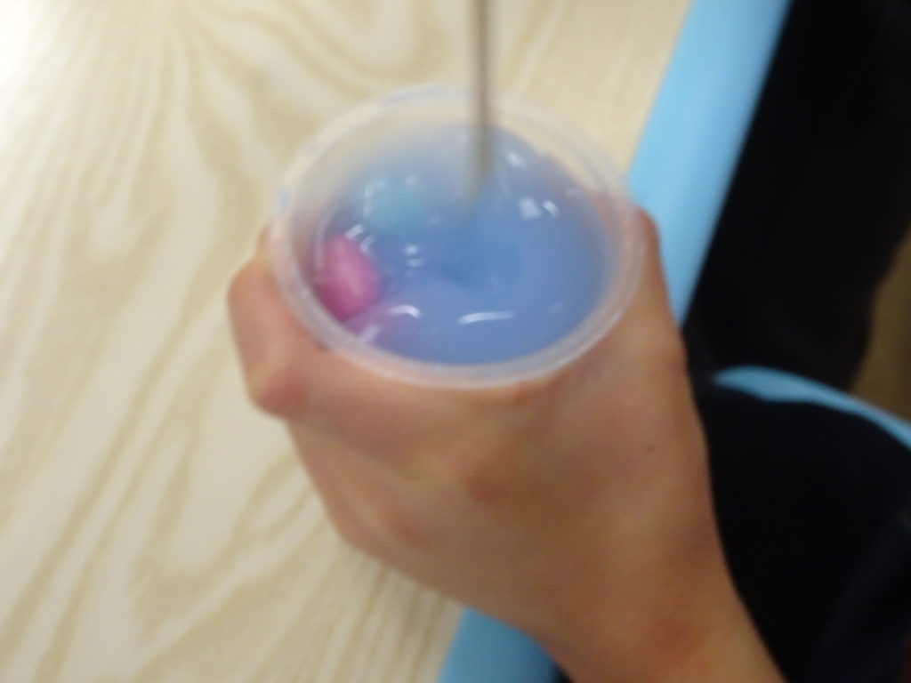 「おおーー!」みるみるうちに液体がまとまっていき、素敵なスライムが完成!