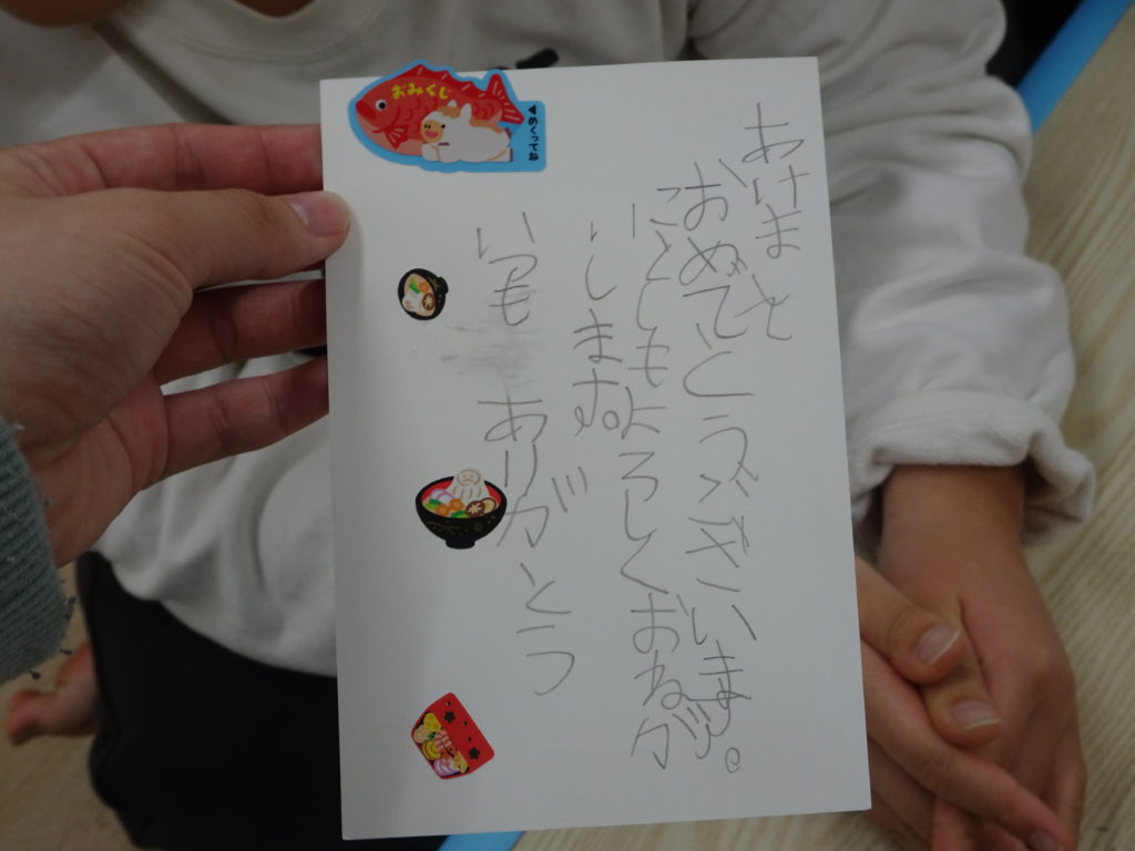 年賀状の“あけましておめでとう”と言う意味を知っている子もいました。