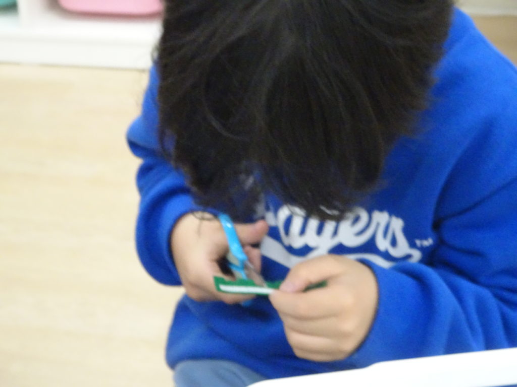 丸めるのを丁寧に丸めている子や細かく小さく丸めている子などみんな上手に出来ました。