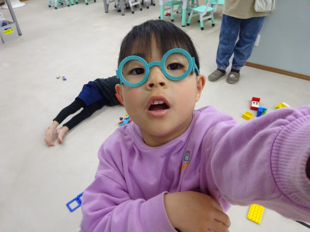 初めはどんなおもちゃかな…と注射器や聴診器を取り出したり、眼鏡をかけて見たりした後、お友だちとお医者さんごっこをはじめました。