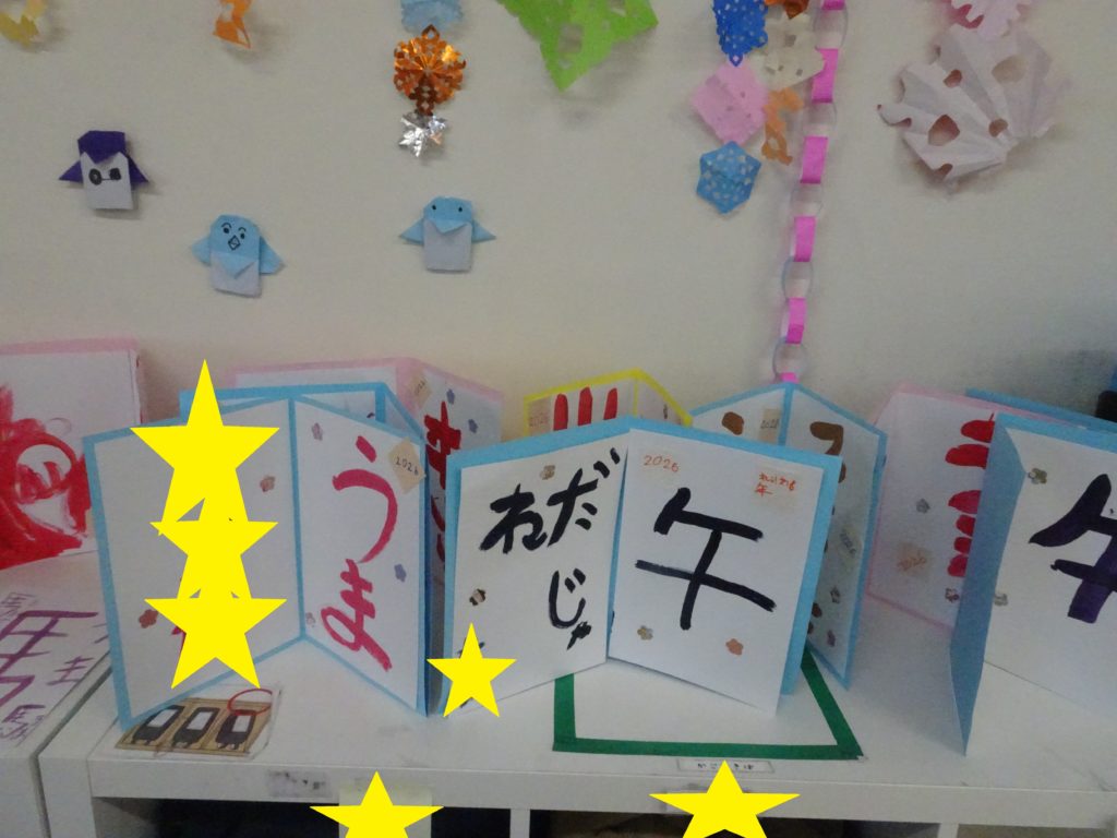 2026年01月06日 ゆめなーる稲沢教室 新年の書初めしました🖌 令和8年1月6日 火曜日 今日は書初めをしました。 みんな書初めって?と言う様子でしたが、やり始めると… 自分の書きたい文字や午年🐎のための文字を選び、ひらがな・カタカナ・馬・午、それぞれ書きたい文字を書きました。 「うまって牛ににてるね」と牛の漢字を思い出している子や真剣に午の漢字を見て描いている子など様々でした。 隣に書く文字は、名前の子や自分の思いついた言葉など可愛らしい言葉を選んでいる子もいました。 みんな上手に書けてすてきな書初めが完成しました。 記事一覧に戻る