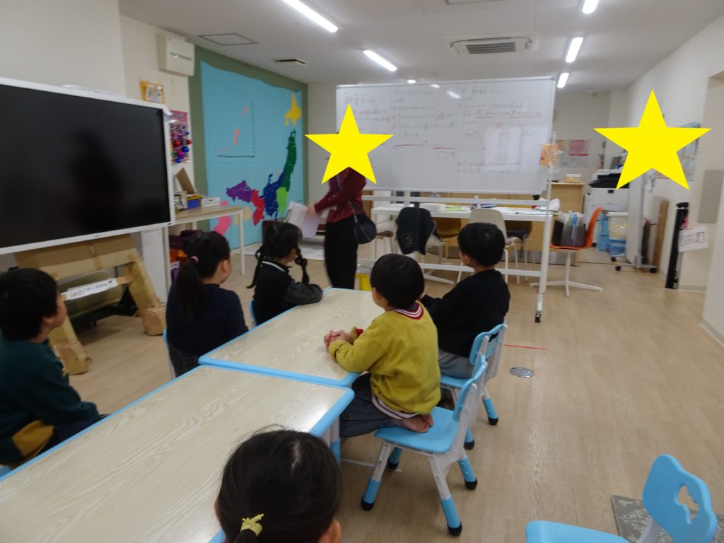 子ども達は、前で話している先生の話を前を見てしっかりと聞いていました。