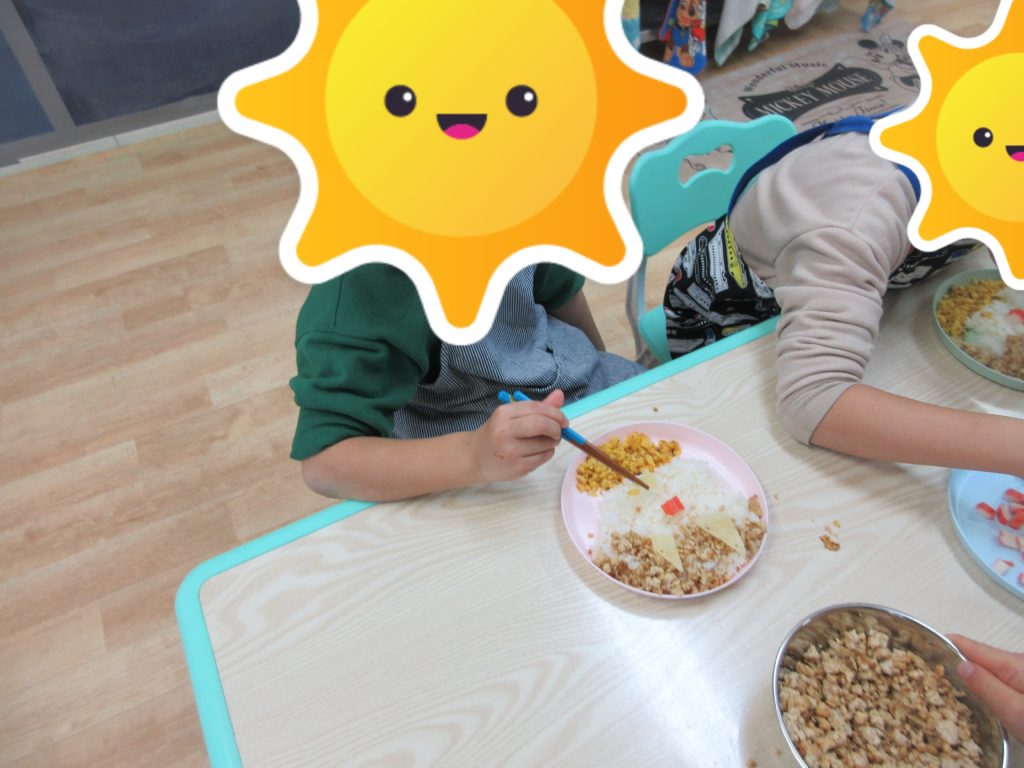 みんなたくさんおかわりをしてモリモリたべました☺!食後には、床や机に落ちたそぼろをみんなで大そうじも頑張りました👍