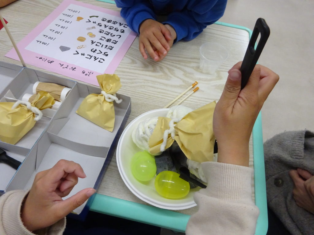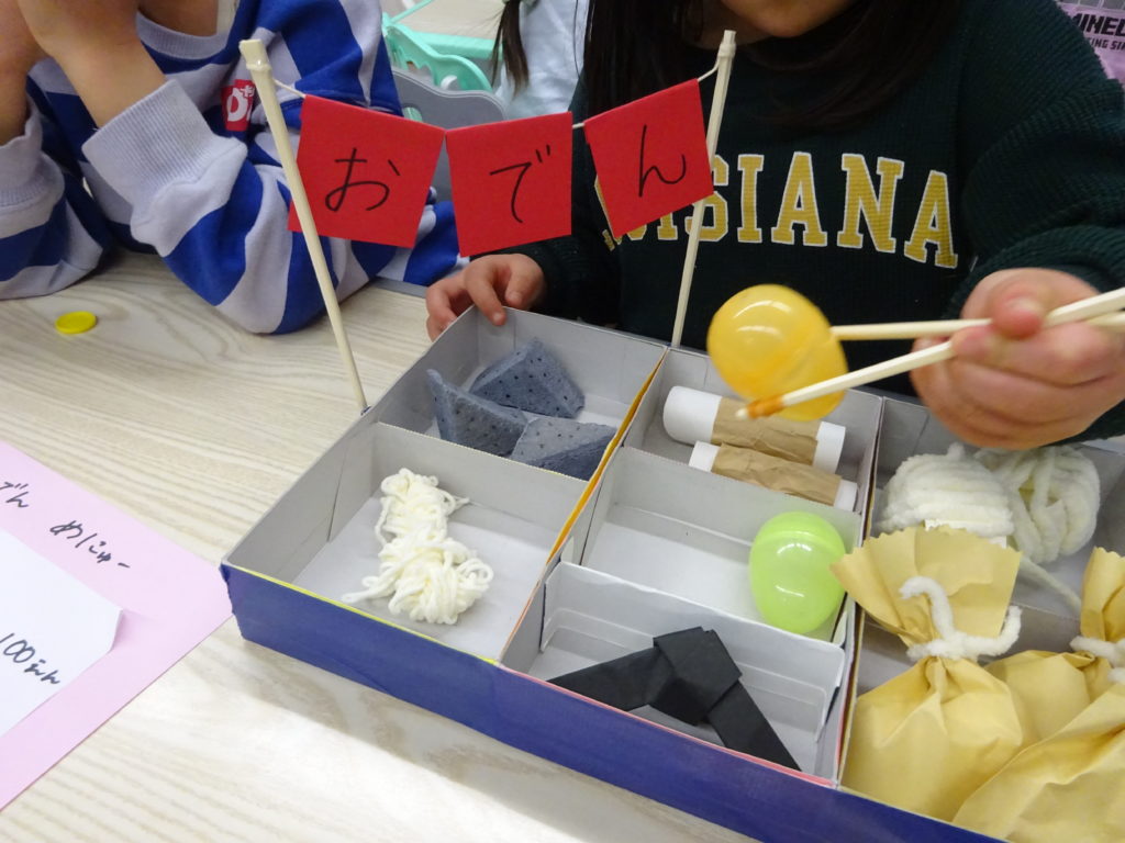 具材をつくった後は、お店屋さんとお客さんに分かれてごっこ遊びをしていきました。