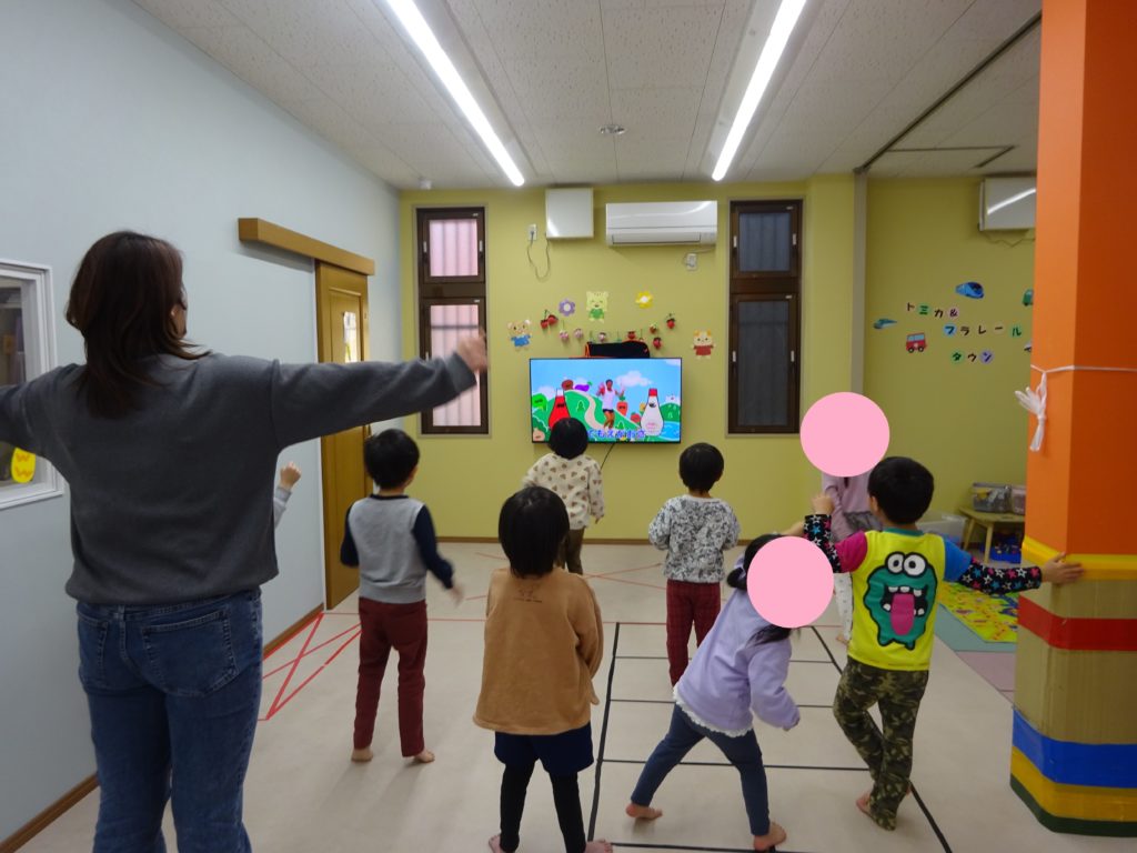 リズムや踊りが面白く気が付いたら身体が動き出し、ニコニコのノリノリで身体を大きく動かしながら踊る子ども達でした😁