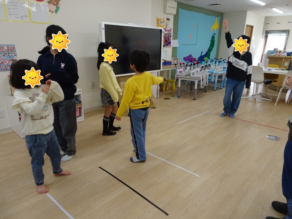子ども達は「ブー」「フー」「ウー」のいずれかの役割が与えられ、与えられた役の言葉しか話せず、その状態で同じ仲間を見つけます。