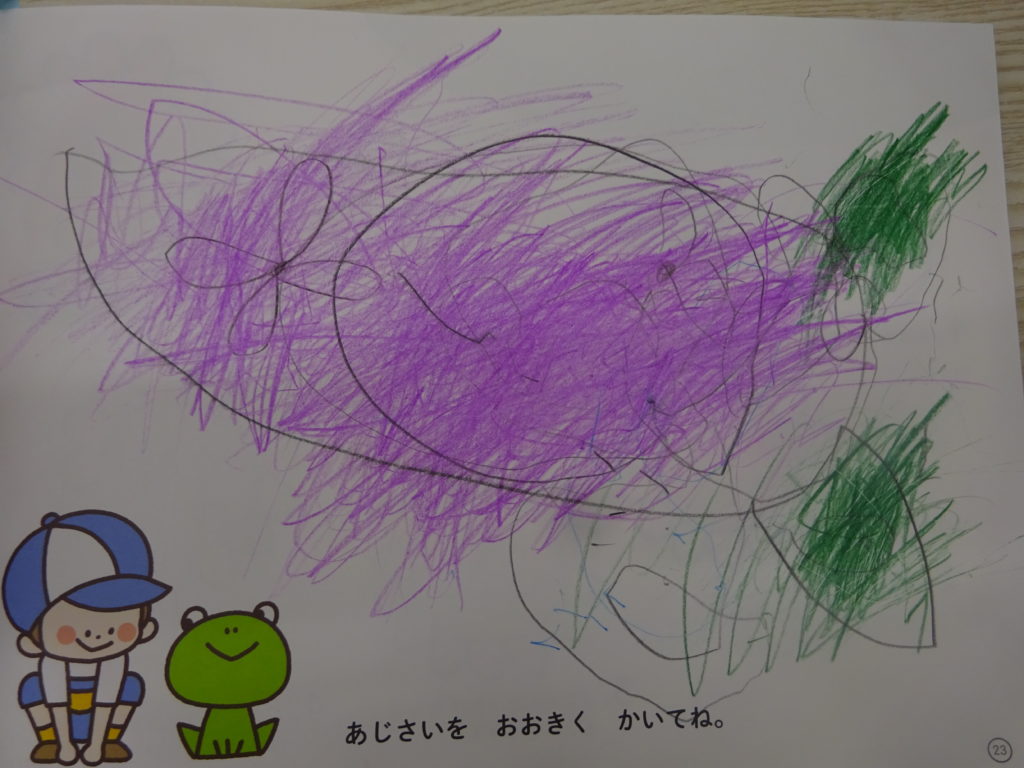 何度か行っていくと、少しずつ筆圧が濃くなってきた子や色塗りがはみ出す事なく出来るようになった子など成長も見られるようになってきました。