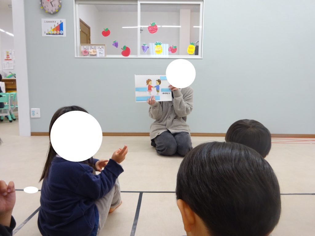 その後は、曲に合わせて体を動かしてお友だちや先生と握手をしました。