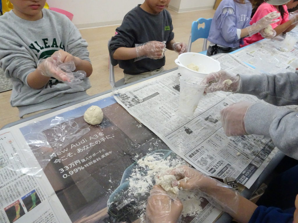 2026年04月03日 ゆめなーる稲沢教室 強力粉粘土作りしました♡ 令和8年4月3日 金曜日 今日は、強力粉と塩と水、油を使って粘土を作ってみました。 みんな「これが粘土になるの?」と言って怪しそうに見ていましたが、出来上がるのが楽しみで目をキラキラさせていました。 こねていくうちに「おおー」「みてみてできたー」とまとまってきた粘土を嬉しそうに見せてくれました。 丸くしたり、ちぎったり、小さくしたりと形が変わってくるのをとても楽しんでいました。 子ども達それぞれ固さが違う為、それも面白いようでした。 ピザやギョーザ、ハンバーグなど食べ物を作って楽しみました。 記事一覧に戻る