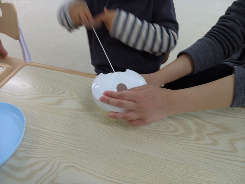 シャボン玉ができたことをお友だちを一緒に喜びあう子どもたちの姿が微笑ましかったです♡
