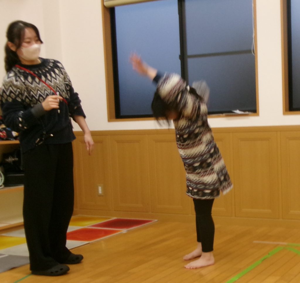 相変わらずの寒さは続きますが、そんなことはお構いなしで今日も元気にみなさん来所しました。 今日の活動は「言うこと一緒、やること一緒」です。 スタッフが、「右」「左」「前」「後ろ」のいずれかをいうとその通りにジャンプして、 […]