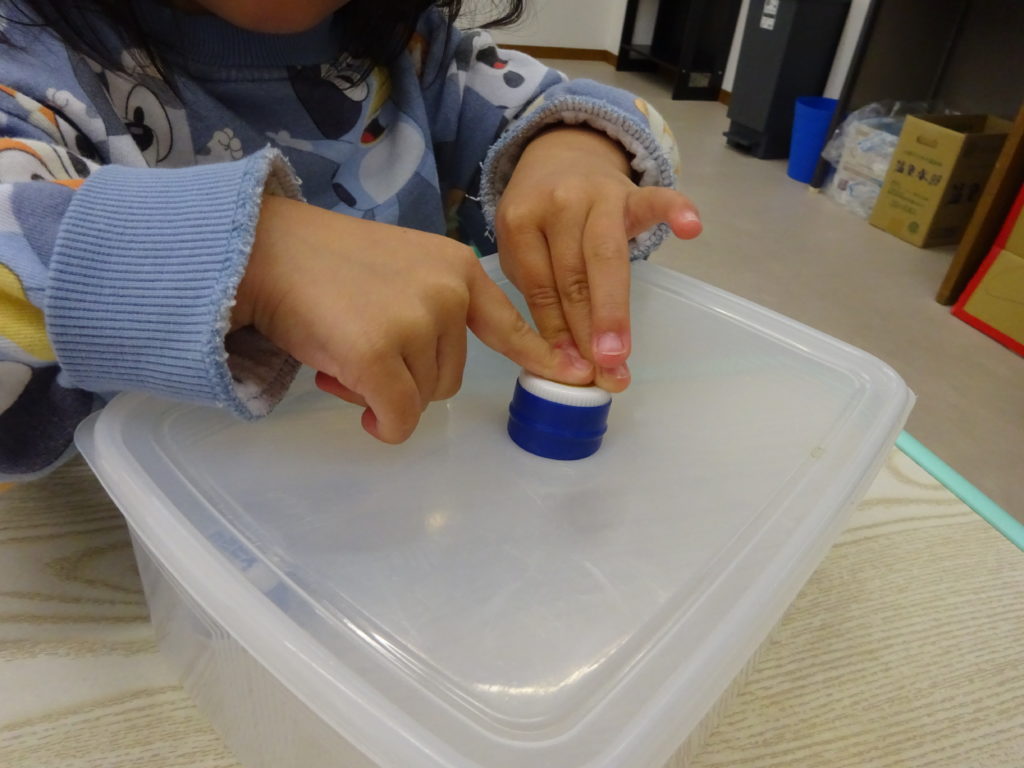 R8.2.19(木) 今日はペットボトルキャップのプットインやボタン練習、つみき積みなどの指先、手先を使った遊びに挑戦しました。 プットインではなかなか穴に入らず苦戦していましたが、先生に「やって」と言ってやってもらい、 […]