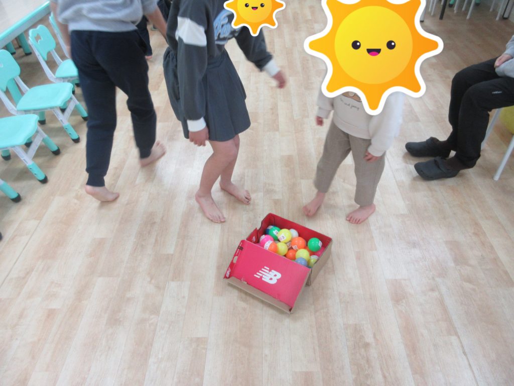 2026年3月12日(木) 今日は、ふわふわ言葉をみつける玉入れに挑戦しました。床にたくさん広がったカラーボールに、ふわふわ言葉やちくちく言葉が書かれています。そのボールをよく見て、ふわふわ言葉のかかれたボールだけを見つ […]