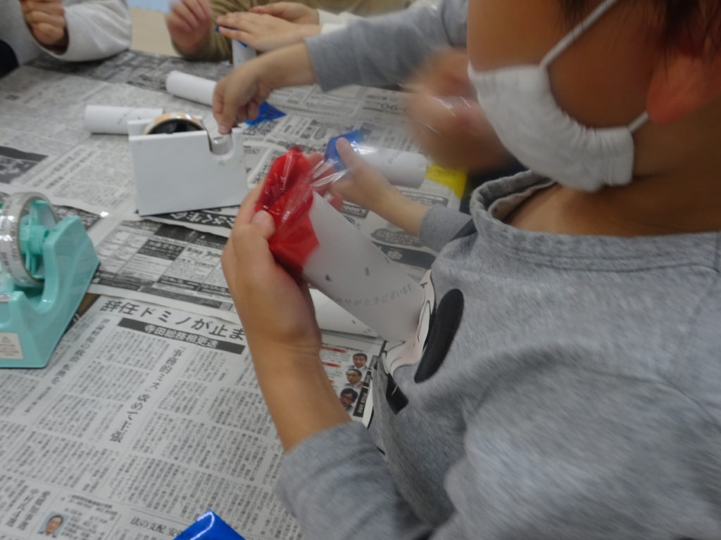 2023年3月30日(木) 今日は、ピコピコカプセルを作りました。ガチャガチャのカプセルを上下に分け、真ん中にペットボトルのパーツを貼り付けます。中にはビー玉を入れて重さをつけます。 それを上から下に転がすと、まっすぐで […]