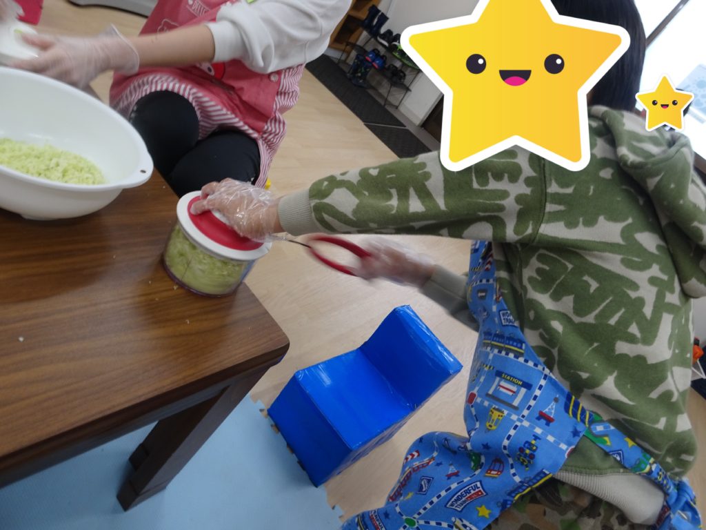 3月18日(土) 本日はみんなでお好み焼きを作りました。 ハンドミキサーでボールいっぱいのキャベツを一生懸命みじん切り! 「腕が痛い~。筋肉痛だよ~!」と頑張っていました(^^) 卵割に挑戦した子は「手がべちゃべちゃにな […]
