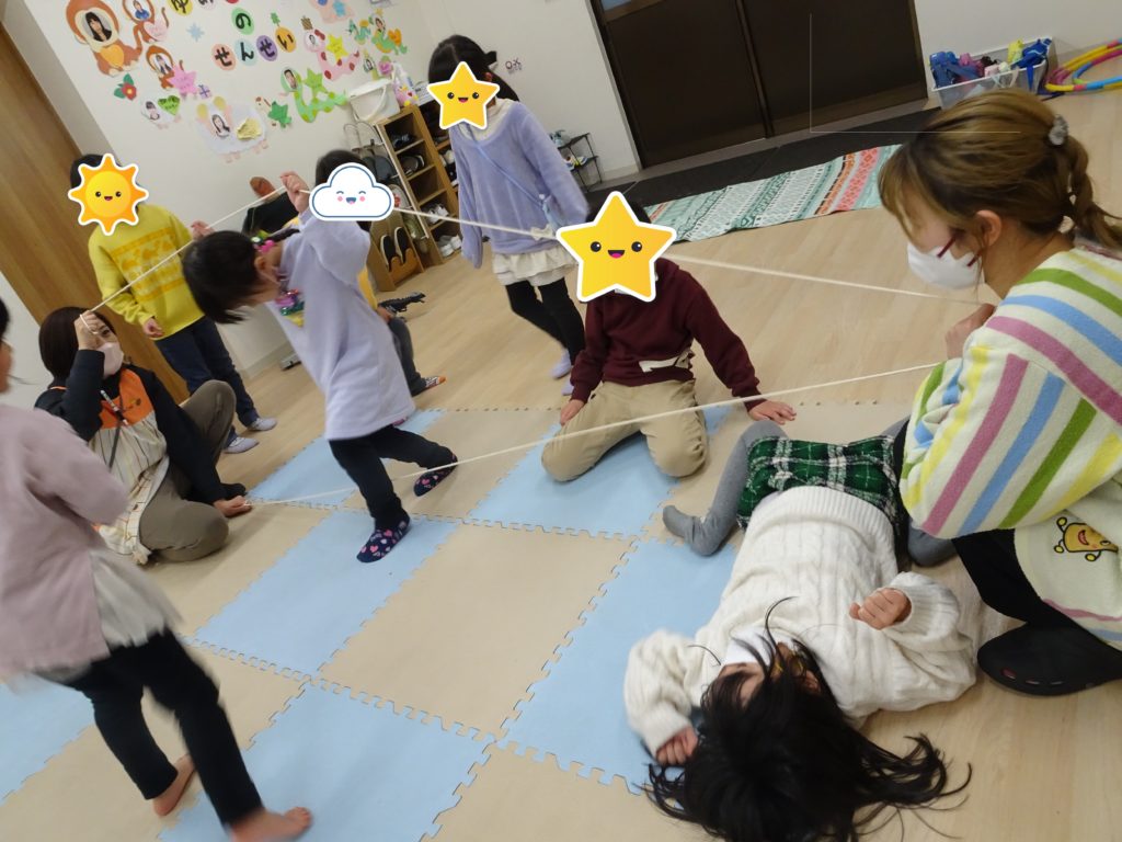 1月25日(水) 今日はだるまさんのお引越しゲームをしました。 「だるまさんが、、お引越しをした!」という先生の掛け声とともにマットをお引越しするみんな お友達と手をつないで協力する子や「こっちだよ~」と先生を呼んでから […]