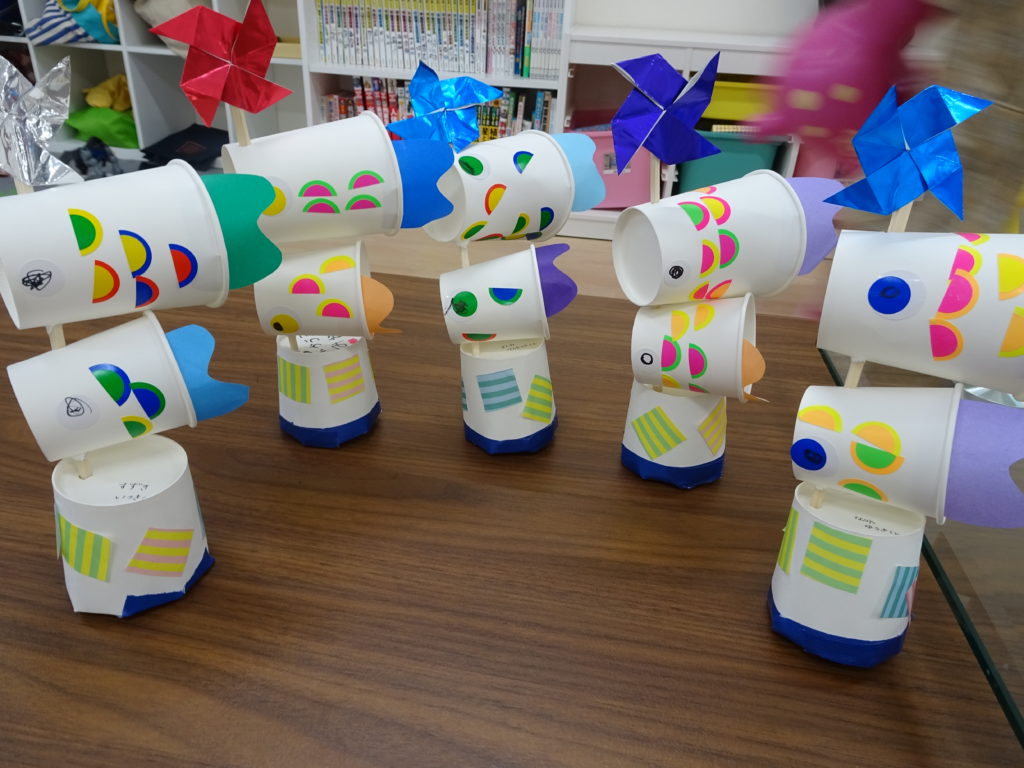 4月19日(火) 2種類の大きさの紙コップを使い、また風車や鱗色、土台の飾りを一人一人、好きな色を選びました。 「うろこの向きどっち?」と見本をみながら丁寧につけていくことが出来ました! 友だちが作っている様子をみていた […]